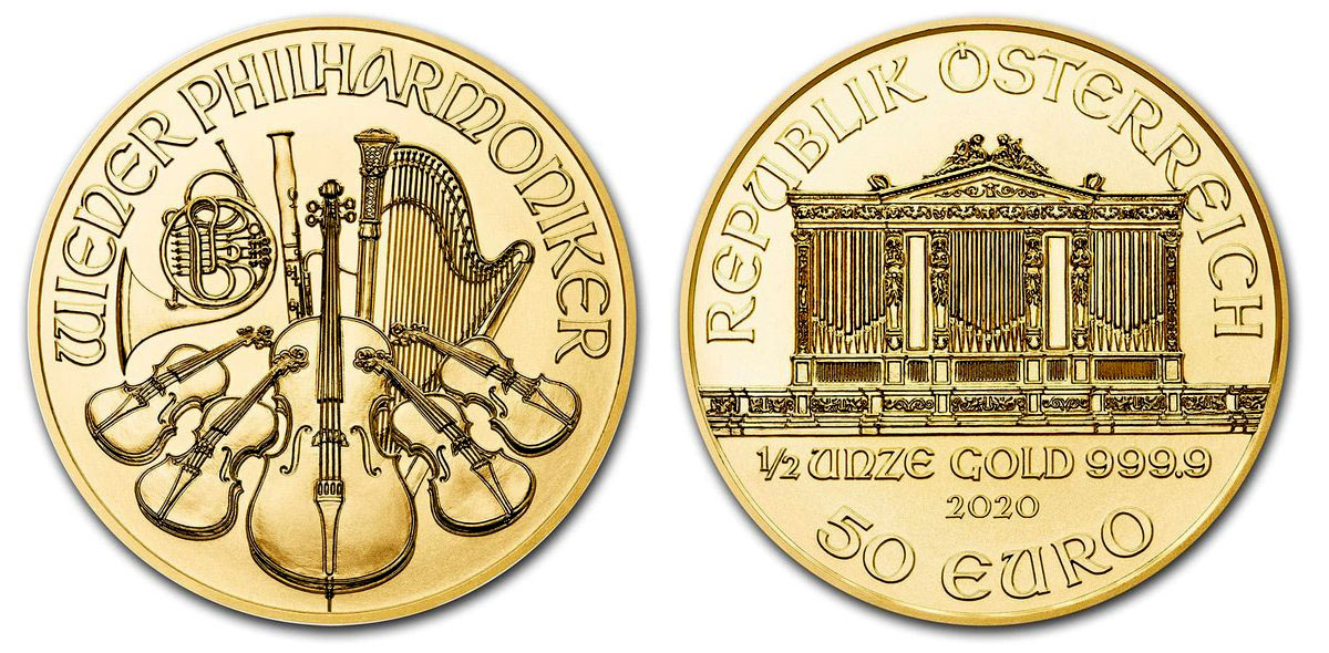 ウィーン金貨は裏面にヴァイオリンやハープなどの管弦楽器屋やホルン・ファゴット、おもて面にはウィーン・フィルハーモニー管弦楽団の定期演奏会会場である「楽友協会」の黄金の間にあるパイプオルガンがモチーフとなっている、実にオーストリアらしい金貨です。